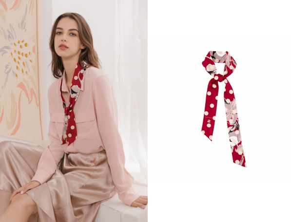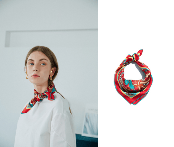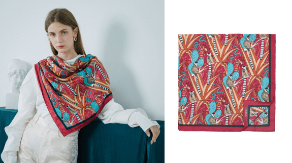 鲜艳的红色配饰是最衬圣诞节和元旦新年的节日气氛的,不论是糅合了优雅百合的精致波点窄丝巾,还是点缀了活泼狐猴图案的大小方巾,都是散发满满节日幸福感的点睛配饰。