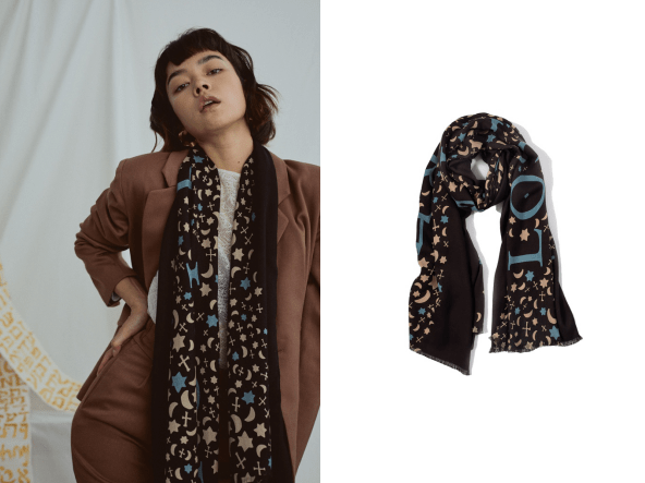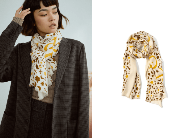 哈扎尔印花羊毛长围巾点缀了星星和月亮的图案,宛如仰望星空的那份浩渺和澄澈,同时又充满神秘的浪漫气息。水溶混纺羊毛不仅易打理且手感柔和,黑褐色和暧白色的双色设计在这个节日季作为情侣款礼物也是十分应景。