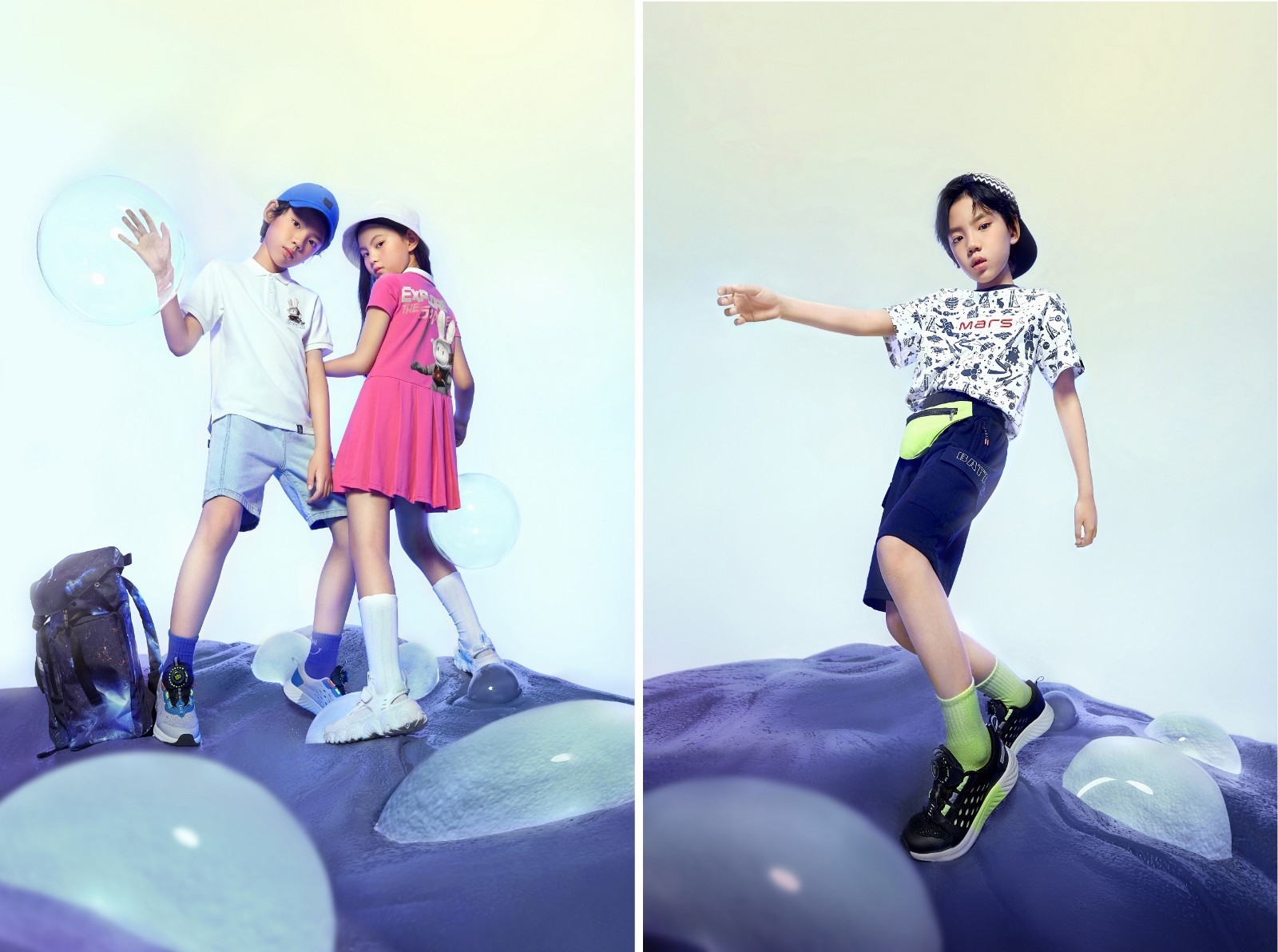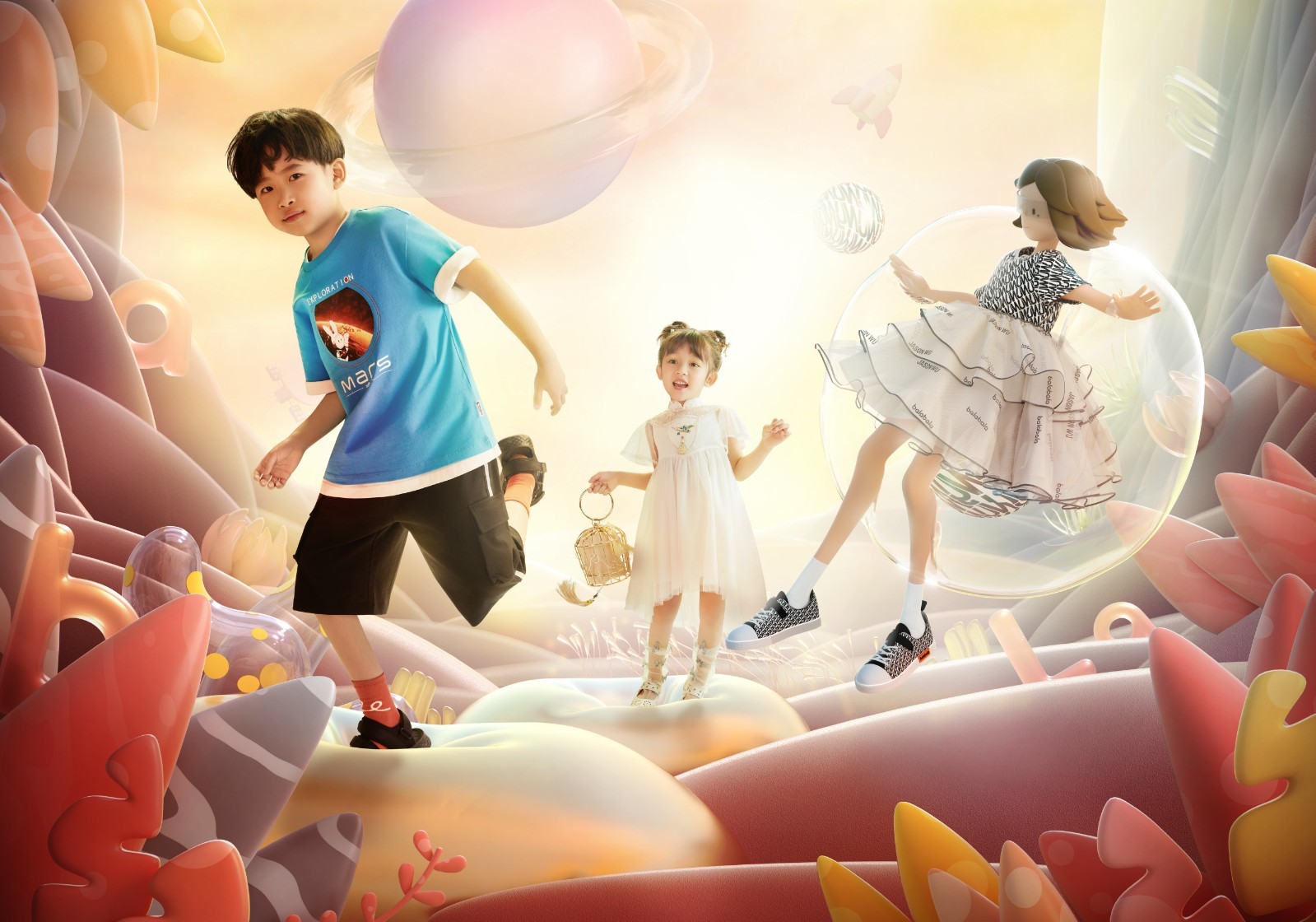 作为国货品牌,巴拉巴拉始终坚持不懈支持中国航天梦,2021年2月正式官宣成为中国火星探测授权联名品牌,balabala X 中国火星探测系列应运而生。该系列以火星探测为设计灵感,运用轻透材质加入反光面料拼接、构建立体层次感和未来运动感的廓形,打造男孩女孩遨游太空的科幻炫酷形象,并以红黄主色彰显爱国热忱,彰显未来主义国潮新风。这是飞越星系宇宙的“探索之梦”。