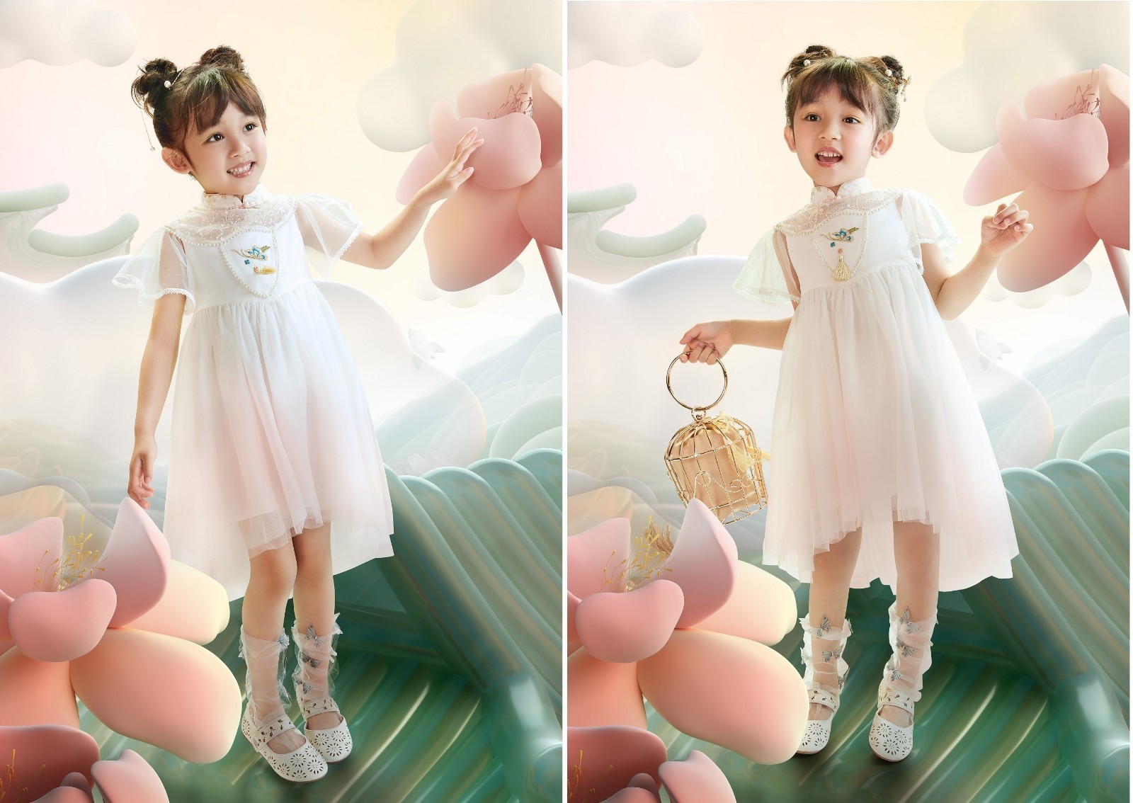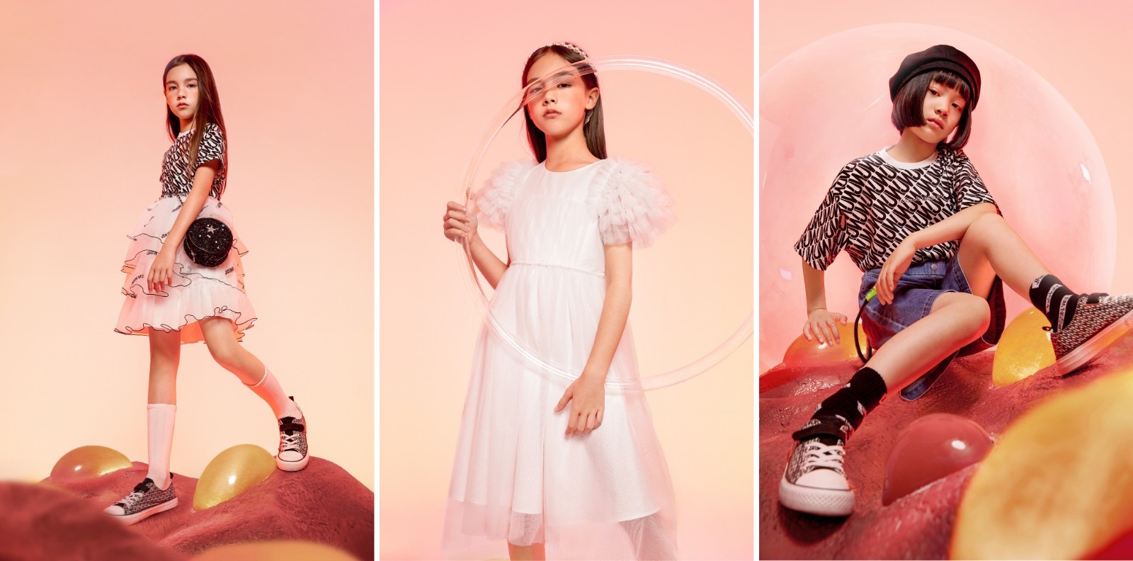 打造属于中国童装的高阶时尚是一种全新的尝试,balabala X JW系列结合了2021 春夏纽约时装周Jason Wu“逃离现实”的度假风主题,在保留JW品牌优雅浪漫调性的同时提取羽毛、珍珠、花朵等元素,色彩以黑白为主,点缀鲜亮橙色和金属银色,既是永恒的经典,又蕴含时尚和高级感。这是升级时尚格调的“摩登之梦”。