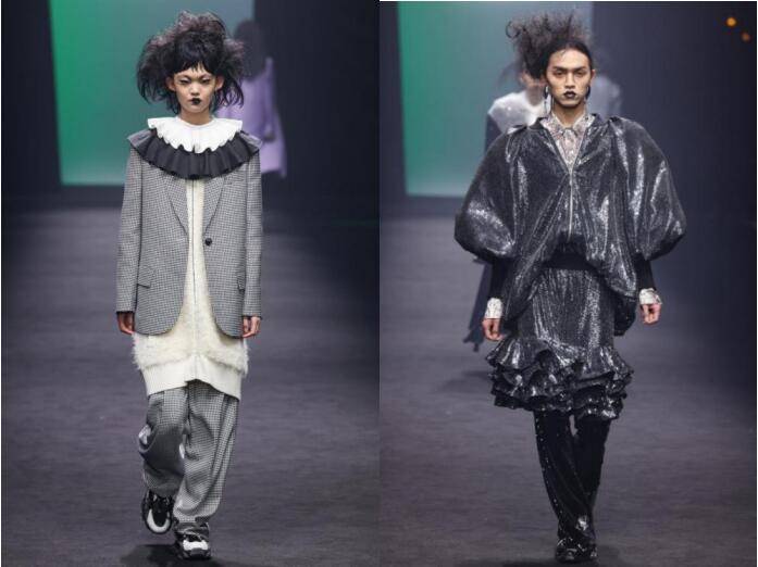 本季DJFL品牌的设计总监高子珺,主张打破复古与未来的风格界限,把设计理念巧妙融入到廓形与色彩的运用中。不受拘束地思考,不被任何事物限制想法,从而表达DJFL“无定义自由”的品牌基因。没有人或事物是完美的,看似怪诞或错误的事物也有它的价值。DJFL是在传递一种对于穿着的思考方式,一种无拘自由的生活态度与思维主张。