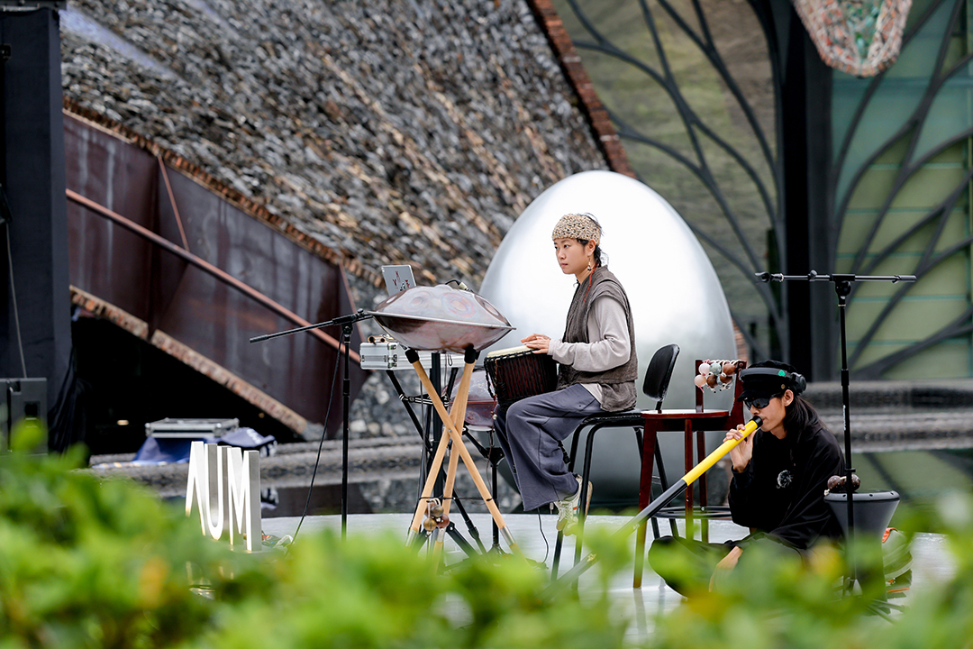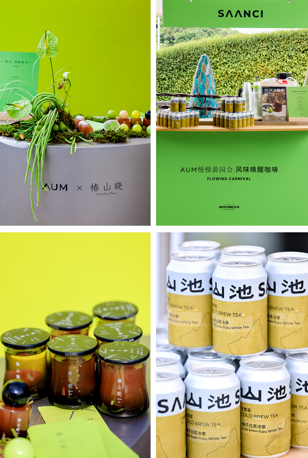 坚守品牌自然本源,传递当代自然慢生活美学。服装之外,AUM也一直在寻找表达的多种可能。「心居无界」年度大秀同期,于玛丝菲尔大厦的花园中,AUM举办了一场“花园草地音乐节”,现场乐队以疗愈系音乐营造流动的声景,并特邀音乐唱作人刘恋登台倾情献声,以声为引传递疗愈与自然的能量。同时联动山池、椿山晓等生活品牌,共同呈现“慢慢游园会”,构筑一处融汇自然意趣与生活美学的沉浸式慢生活场域。