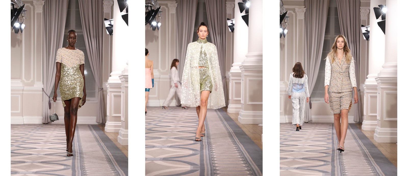 SS23系列将令人耳目一新的面料进行重构与自由搭配,以独特与个性化的设计表现精致年轻的新季概念。诸如亮片与粗花呢等面料的组合,在创制过程中进行自如地衔接,以细腻质感演绎摩登设计;在方格花呢与粗花呢中并然交替金属面纱或亮片,组构出独特且迷人的纹理布局;以精致刺绣与夺目色彩打造的斗篷单品,勾勒身姿层叠灵动,邂逅春夏悸动。本季新品将女性的轻盈绰约姿态大胆捕捉,并在线条干净的袖身、飘逸的羽毛与修身的廓形等微妙细节中延续品牌一如既往的精巧工艺。