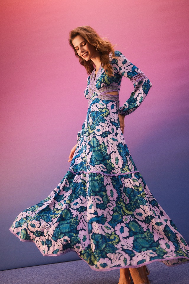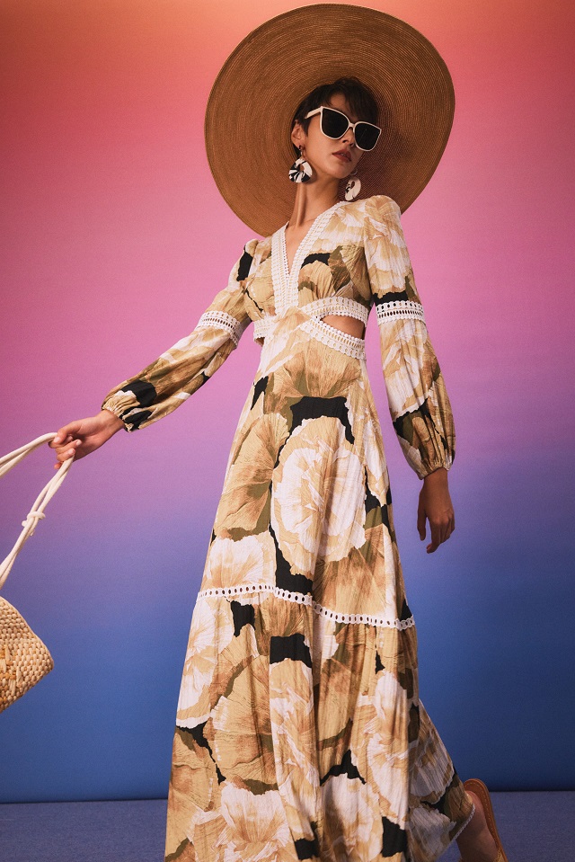 「BALLET RUSSE 海岛蓝铃兰花卉」与「POPPIES 米黄色云朵花卉」两款印花在仿亚麻布上交织出假日序曲。前者以芭蕾艺术为灵感,在面料的天然肌理间演绎优雅姿态;后者则通过环保粘胶绉纱呈现 ,独特的肌 理质感与鲜明色彩相映成趣 ,诠释着经久不衰的复古魅力。「BOTANICAL BLOSSOM 植物花卉印花」以波西米亚风格的剪裁重塑度假美学,宽松的廓形与流动的线条在衣裙间勾勒出随性而浪漫的轮廓。与此同时,「ODI LEVINE 橄榄藤枝印花」在环保海文针织上延续着自然叙事,盎然绿意与舒适面料相得益。假日的慵懒与都市的精致从来不是对立的选择 ,而是现代女性收放自如的智慧体现。