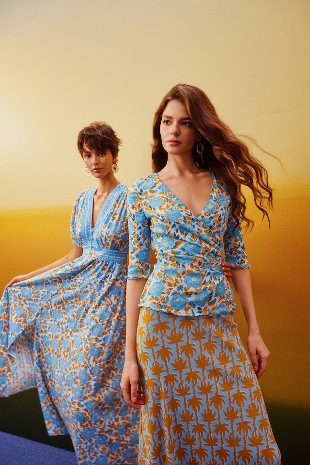 此系列以复古情怀为底,融入当代力量叙事,将花园暮色中的内敛之美娓娓道来。「Biba Rose比芭玫瑰」与「Heritage Palm海岛棕榈叶」延续花园中的植物叙事。玫瑰以复古色调再度绽放,浓郁而优雅的笔触仿佛在诉说时光的故事;棕榈叶舒展而坚韧的生命姿态,宽大叶片象征女性开阔的视野与无界的人生格局。面料延用环保黏纤亚麻、仿亚麻布、真丝针织等材质,兼顾舒适性、垂坠感与可持续理念。